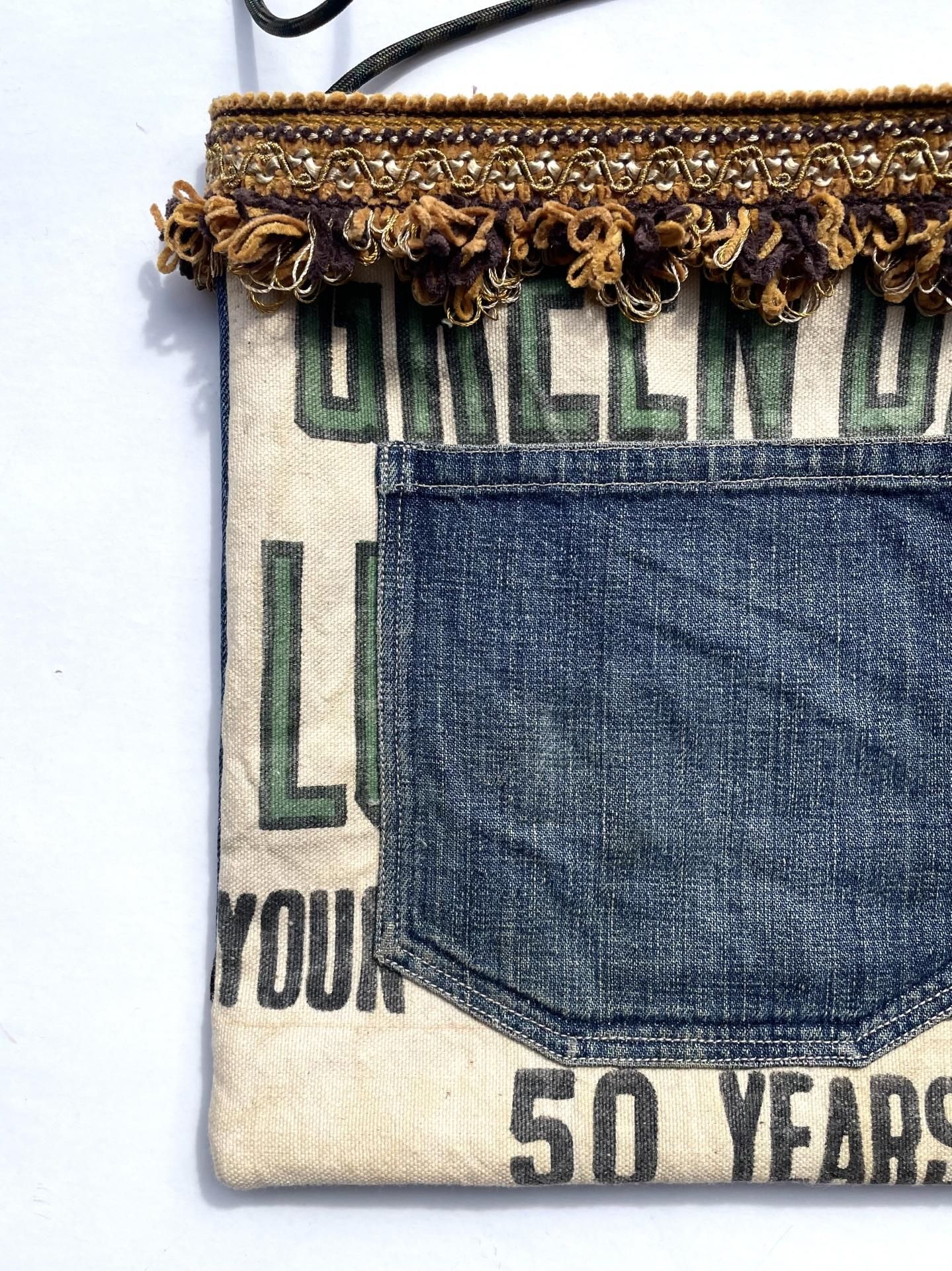 リーバイスの『BIG E』・70年代の『ウッドストック』ファブリック・ビンテージエプロンを使ったリメイクのショルダーバッグです☝️