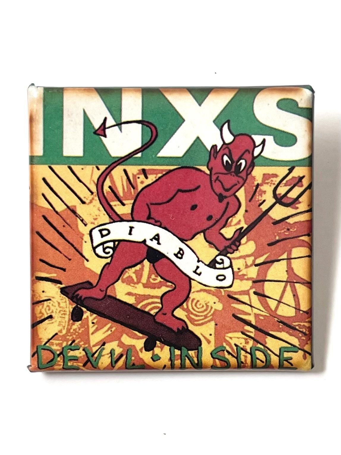 1988年にリリースした「DEVIL INSIDE」の販促用バッジ。