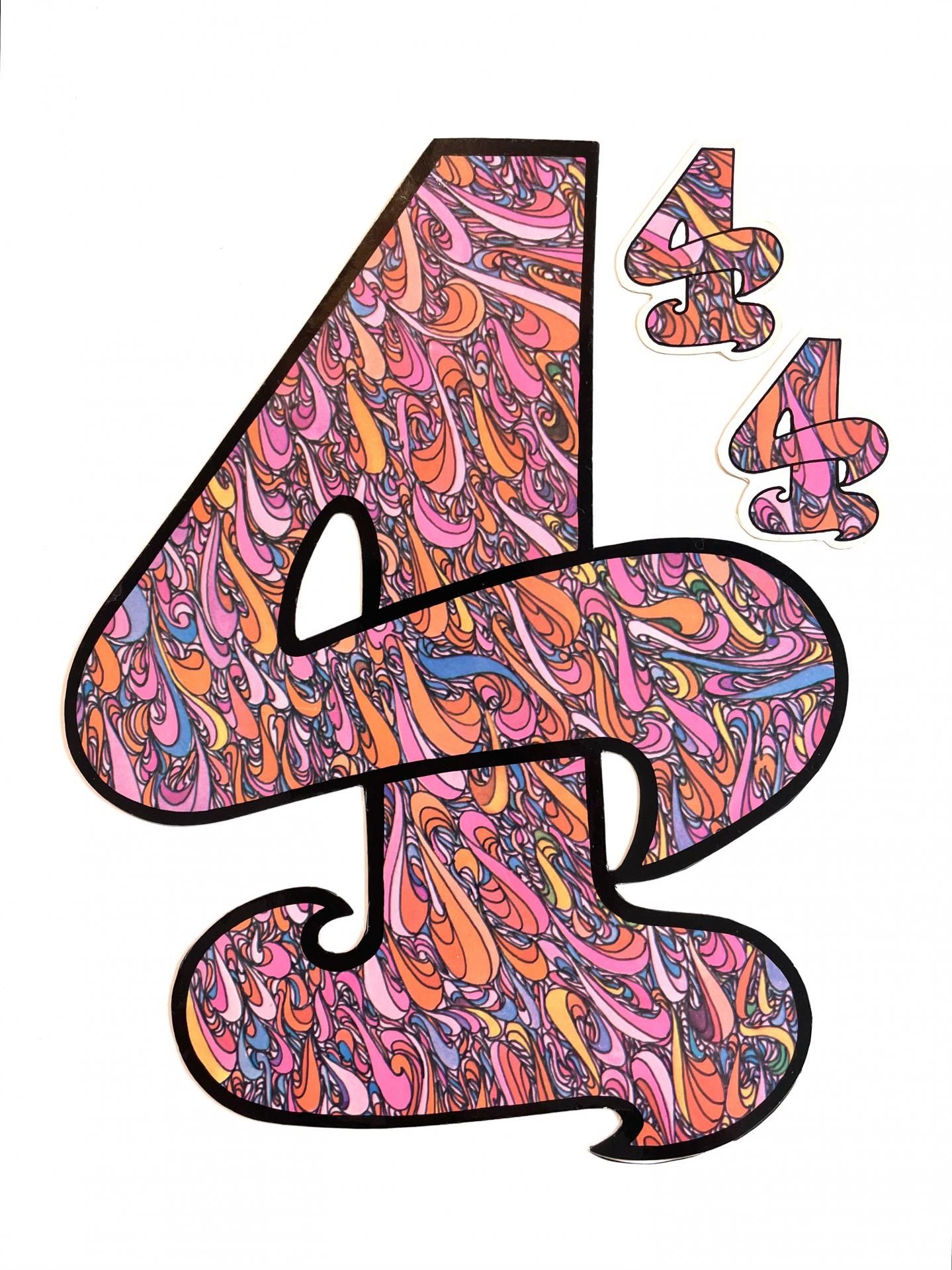 1970's psychedelic design "4" BIG STICKER DEADSTOCK