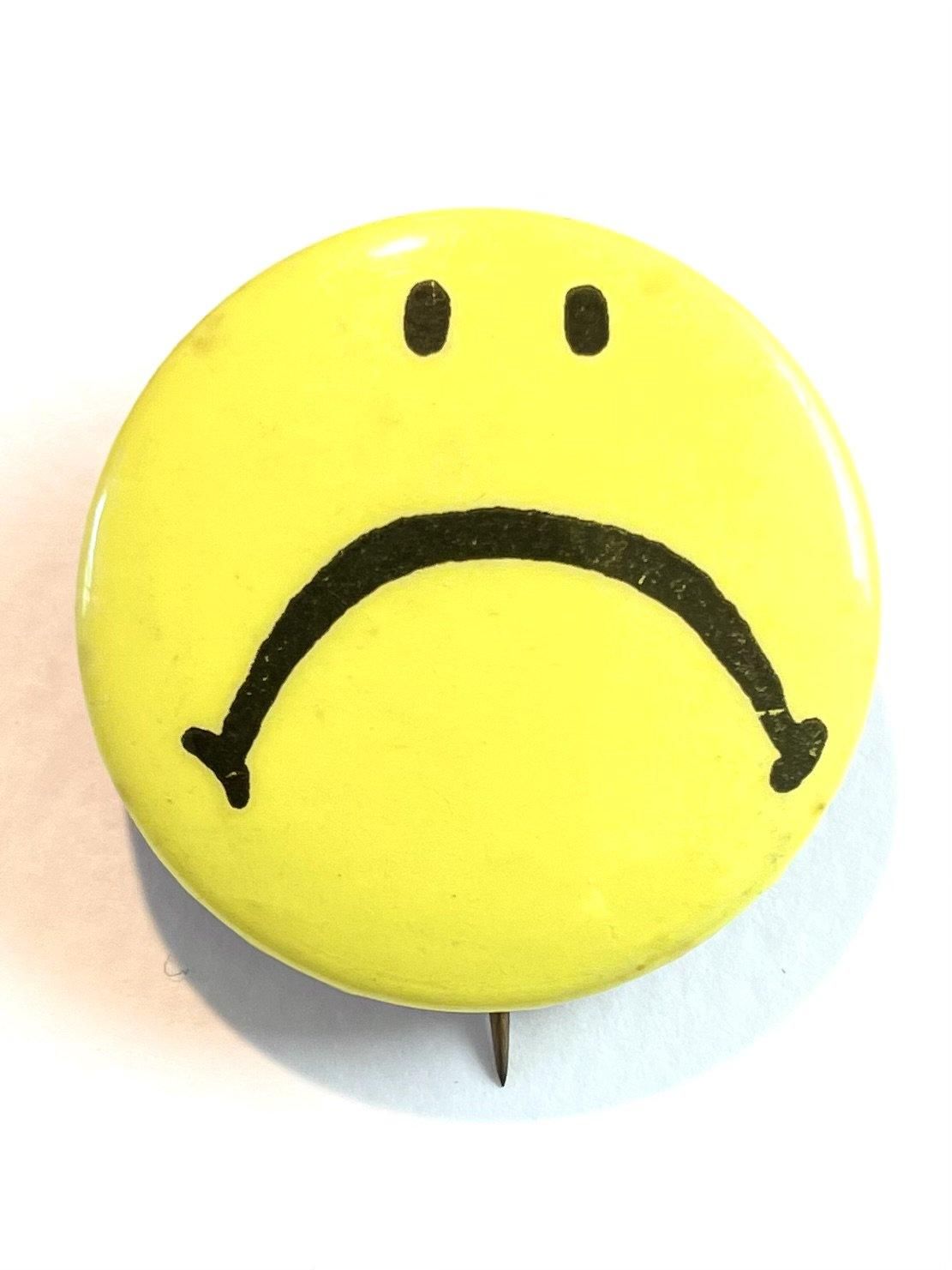 1970's "FROWN FACE" PINBACK BUTTON YELLOW