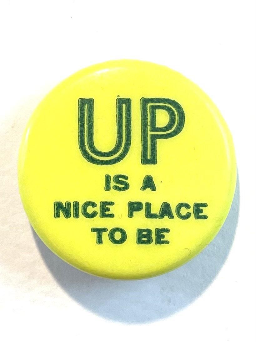 1970's "UP IS A NICE PLACTO BE" PINBACK BUTTON