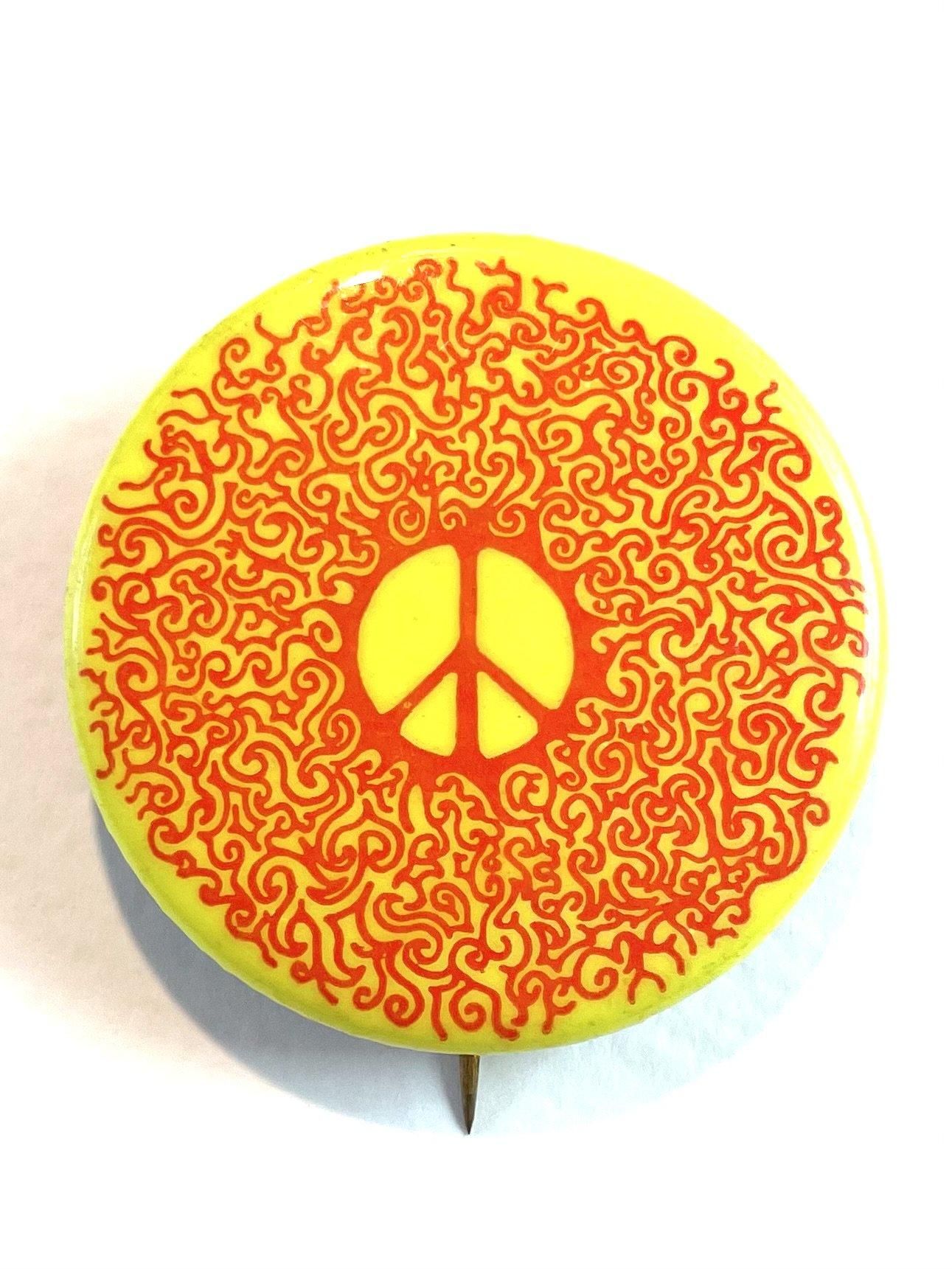 1970's "PEACE SIGN" psychedelic design PINBACK BUTTON RED
