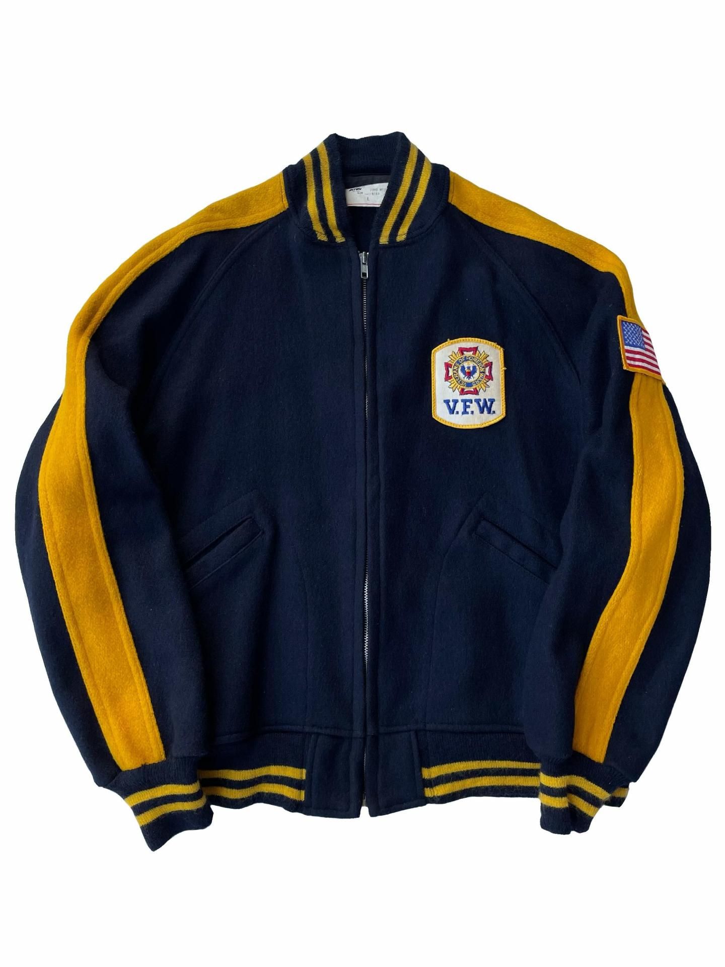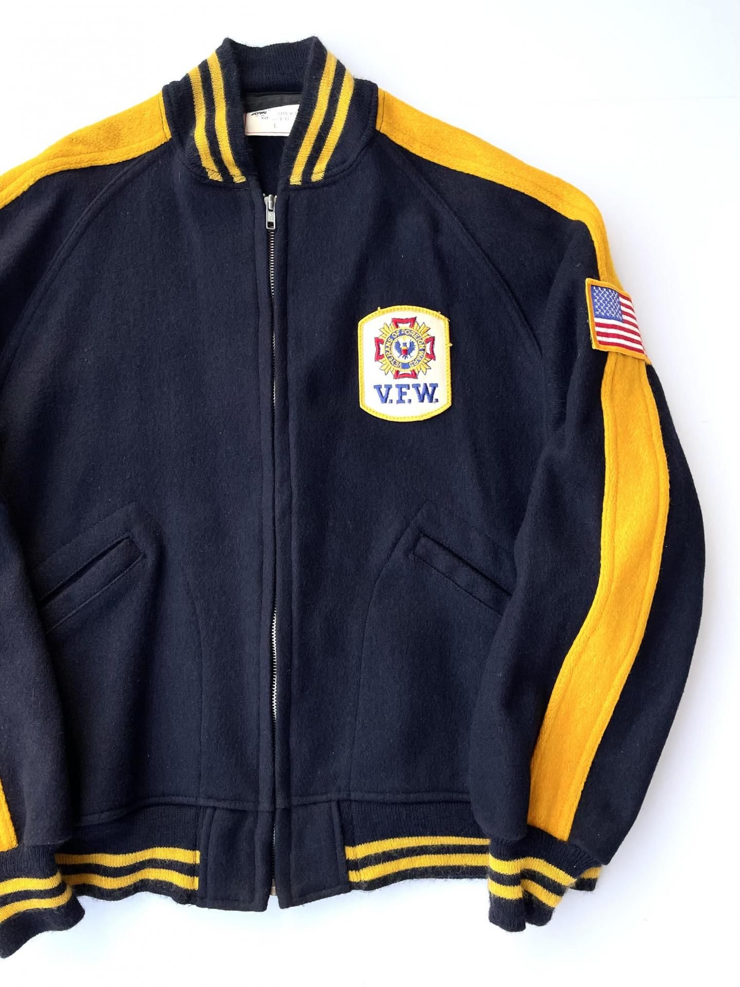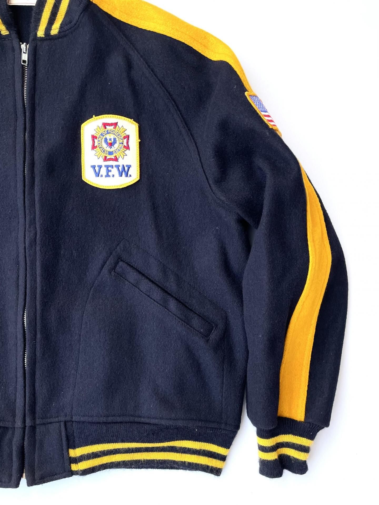左胸には『V.F.W. / VETERANS OF FOREIGN WARS』のワッペン、肩には🇺🇸ワッペン。