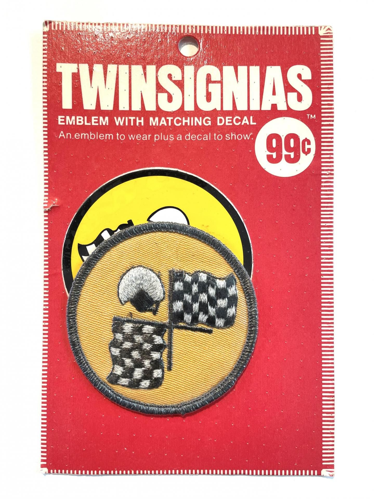 1970's "CHECKERED FLAG & HELMET" PATCH & STICKER SET DEADSTOCK