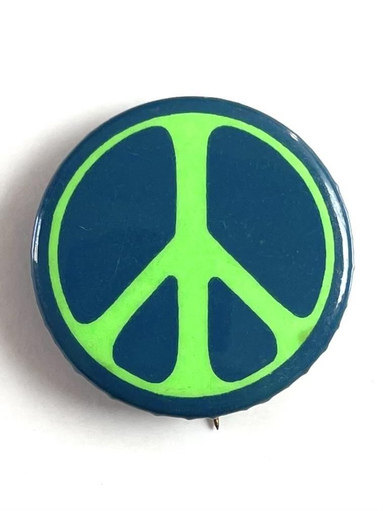 1970's "PEACE SIGN" PINBACK BUTTON DEADSTOCK GREEN