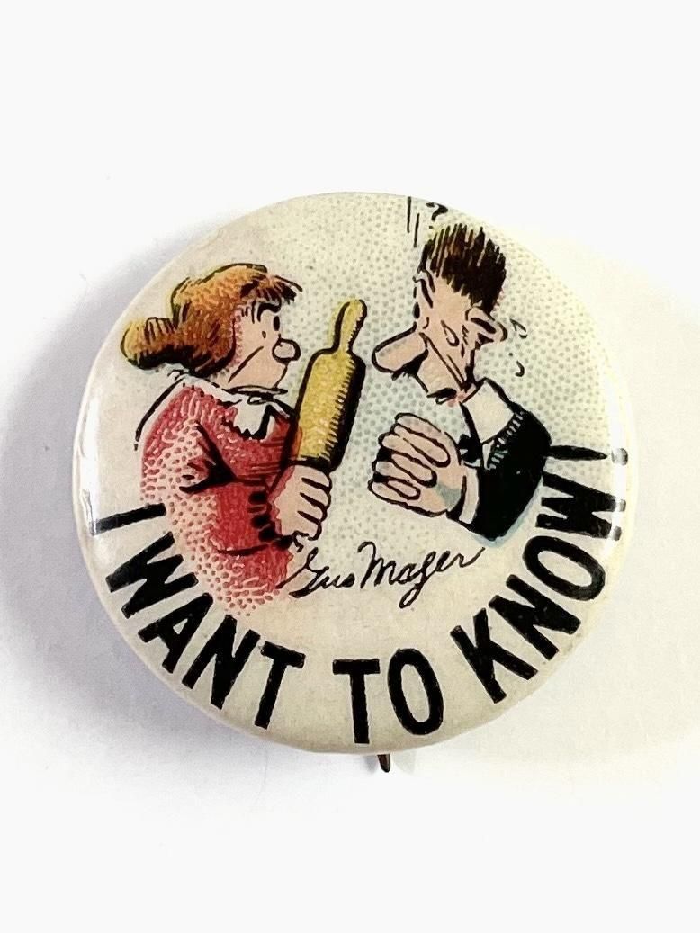〜1910's " I WANT TO KNOW!" PINBACK BUTTON