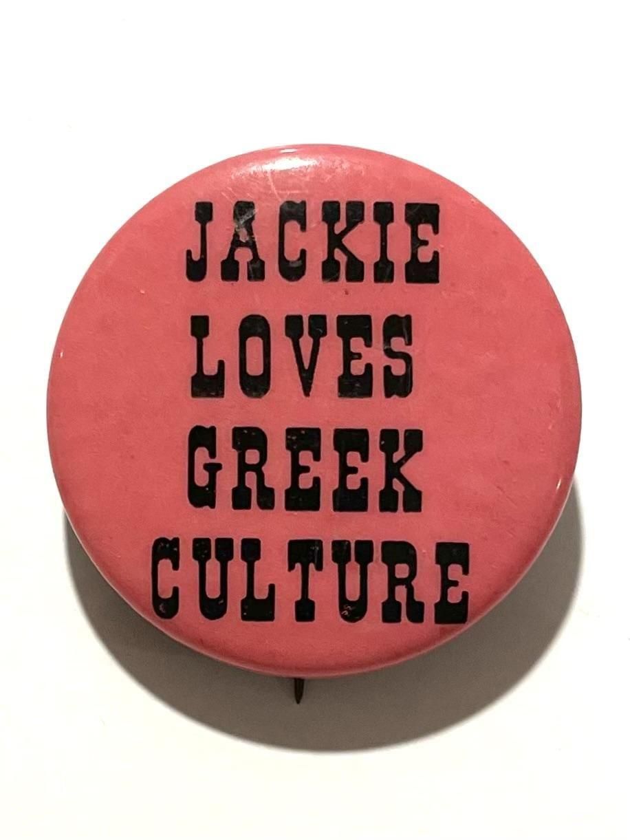 1970's "JACKIE LOVES GREEK CULTURE" PINBACK BUTTON